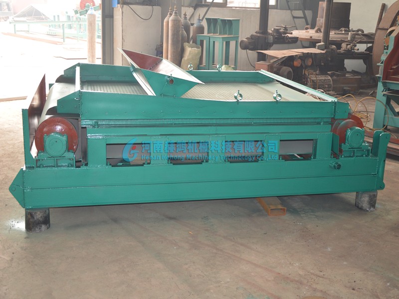 高梯度平板磁選機(jī),采用帶式分選結(jié)構(gòu),通過(guò)對(duì)一千多塊強(qiáng)磁鐵的有效排布,使整個(gè)平板表面磁場(chǎng)強(qiáng)度達(dá)到14000GS。在整個(gè)工作區(qū)域從進(jìn)料到出料,物料在皮帶的帶動(dòng)下,可對(duì)物料進(jìn)行多次磁攪拌,同時(shí)在水流的沖洗作用下,把不含磁的尾礦除去,帶有磁性的礦物被皮帶輸送到板選機(jī)的脫磁區(qū),從而將帶有磁性的礦物通過(guò)脫磁裝置脫掉,來(lái)完成選礦的過(guò)程,整機(jī)功率小、處理大,磁場(chǎng)強(qiáng)度高,并達(dá)到很好的品質(zhì),能夠獲得更大的效益。